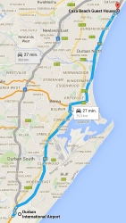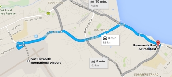 Route vanaf het vliegveld van Port Elisabeth naar het Beach Walk Guesthouse