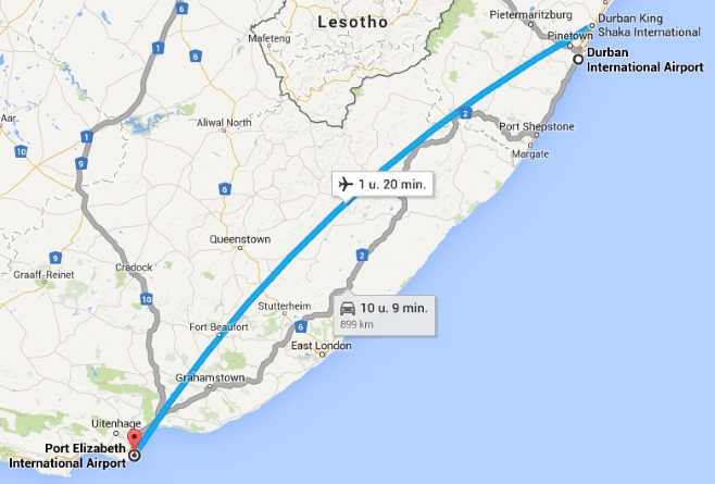 Route vanaf het vliegveld van Port Elisabeth naar het Beach Walk Guesthouse